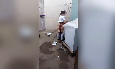 Asian amateur schoolgirl with long ponytail, sensitive constitution, very easy to climax